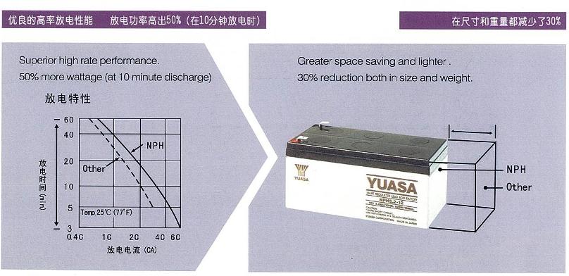 NPH系列是專為滿足高率放電需求而設計的。與普通的NP型號電池相比,NPH系列的大電流放電功率高出50%。